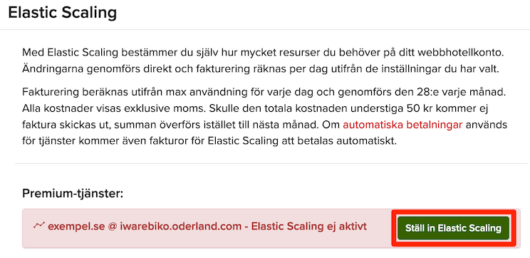 Elastic Scaling är en funktion som låter dig uppgradera de systemresurser som ingår i ditt webbhotellkonto. Funktionen är tillgänglig på alla webbhotellkonton hos oss och styrs genom Kundavdelningen.