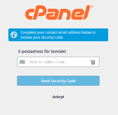 Sedan behöver du fylla i den e-postadress som är registrerad som kontaktadress på ditt cPanelkonto, vilket inte nödvändigtvis är samma e-postadress som är registrerad på ditt kundkonto hos oss.