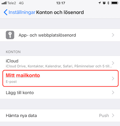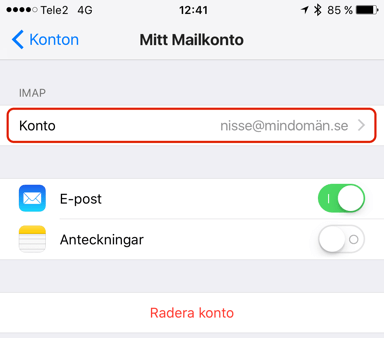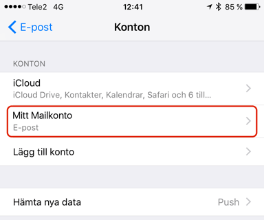 - För att komma åt inställningarna på kontot, tryck på kontot: