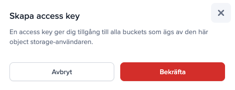 - Det skapas nu en ny access key med tillhörande secret key för din Object Storage-användare.