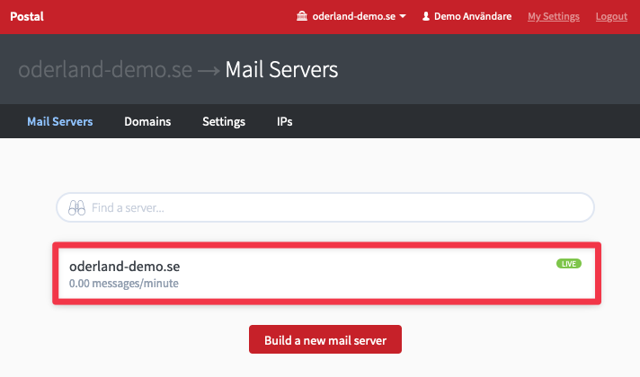 - Klicka på den mailserver du vill kontrollera loggarna på. Så länge du inte själv skapat upp flera mailservrar bör du bara ha ett val här.