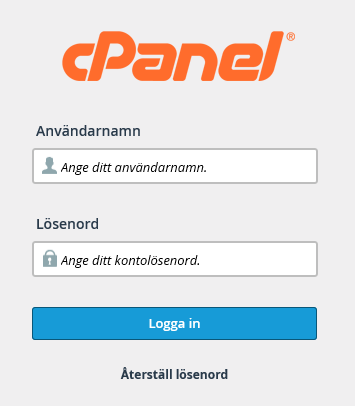 För denna metod behöver du använda användarnamnet som är knutet till cPanelkontot – alltså inte den e-postadress du loggar in med på Kundavdelningen eller ditt domännamn.