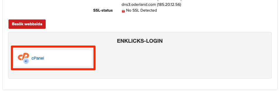 Om du har tillgång till Kundavdelningen kan du därifrån ta dig vidare till cPanel utan att behöva ange dina cPanelinloggningsuppgifter via den enklicksinloggning som finns där.