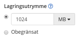 - Du kan ange en övre gräns för hur mycket utrymme mailkontot får använda, alternativt låta mailkontot ha tillgång till hela webbhotellkontots lagringsutrymme.