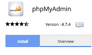 Inne i Softaculous söker du sedan efter phpMyAdmin, klicka Install när du har hittat det.