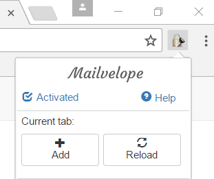 Om det inte syns kan du behöva lägga till sidan till Mailvelope manuellt. Det gör du genom att klicka på Mailvelope-ikonen och välja Add under Current tab samtidigt som du är inne på den hemsida du vill lägga till.