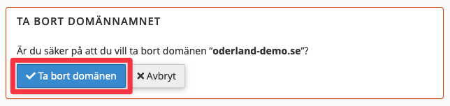 Ta Bort Domänen-knappen.