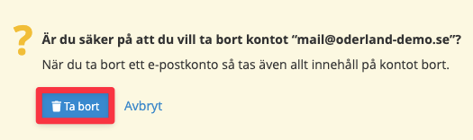 - I rutan som poppar upp, kryssa i rutan att du läst och förstått att all data på e-postkontot kommer försvinna och klicka sedan på knappen