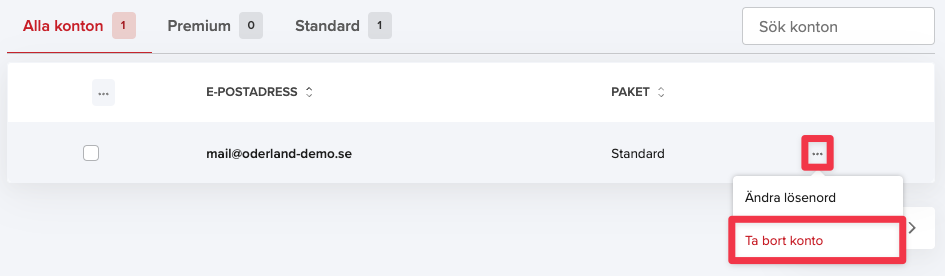 För att ta bort ett e-postkonto från ett webbhotellkonto via Kundavdelningen, gör så här: