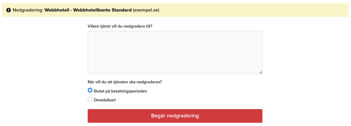 - I följande fält beskriver du vilken tjänst du vill nedgradera till och om du vill att denna nedgradering ska ske vid