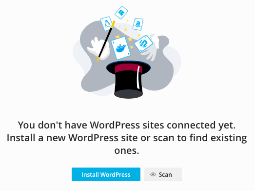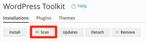 To import installations already available on your web hosting account, click the Scan button in WordPress Toolkit.