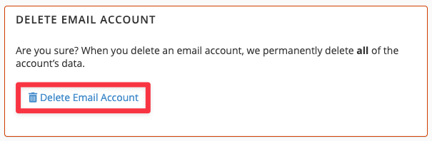 - Locate the email account you want to delete in the list of existing email accounts, click the