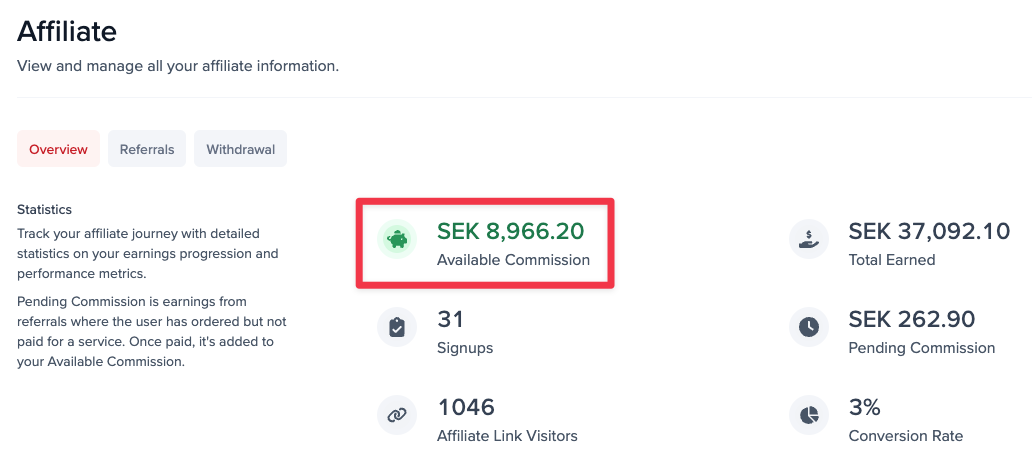 AffiliatesunderAccountin the menu to the left.